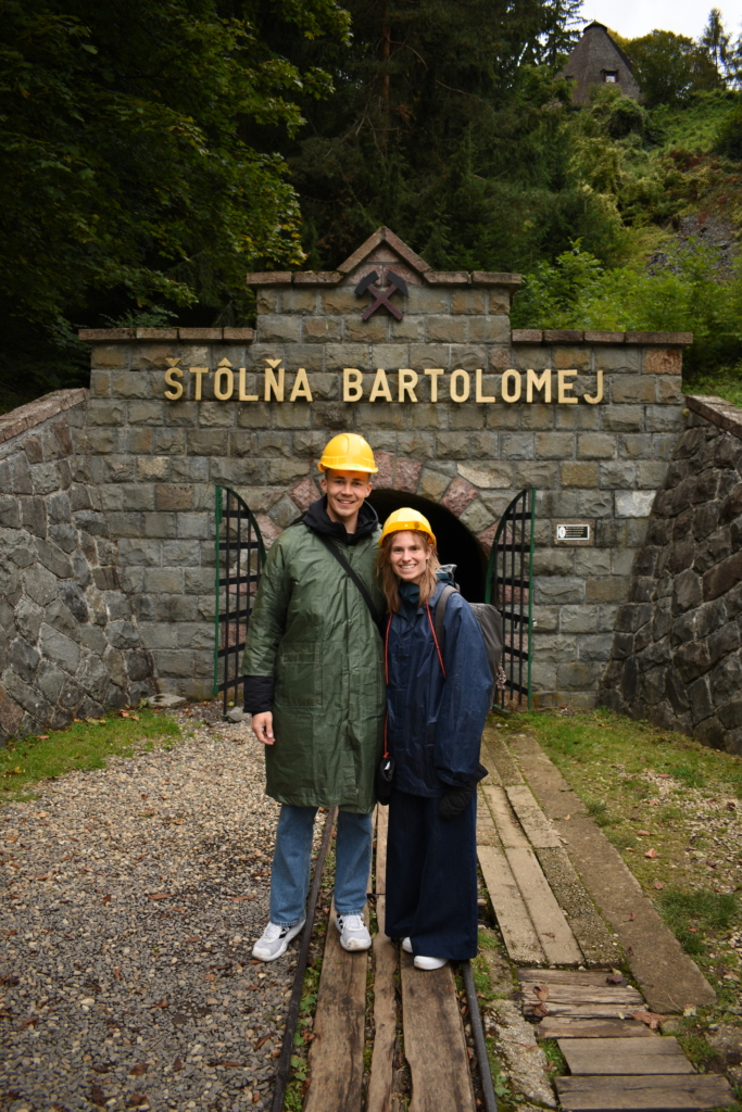 During our stay in the mountain town, we visited the Štôlňa Bartolomej, which also serves as an open-air museum. For about 90 minutes, we were guided through the dark tunnel — a bit low in places for tall people like Moritz. Equipped with protective jackets, helmets, and flashlights, we descended about 50 meters underground.