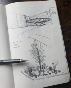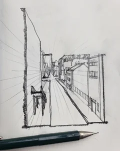 Philadelphia is also a deeply historical city for my country, and I have needed to reevaluate my appreciation of this for the sake of these studies. Although many of the places I have studied belong to a more 20th century paradigm, they still contained many embedded similarities to the areas of Brussels and Berlin that I had exposed myself. The arrangement of streets in Brussels felt very Philadelphian to me; the large axis roads act as guides for gridding sub-streets, while the natural landscape shifts neighboring city blocks into an organic, less-rigid arrangement. Wayfinding may not always be as easy as a simple, uniform grid (like what Berlin was clearly capable of achieving), but this hybrid of city planning techniques still has a way of generating clear navigational imagery inside the users’ heads. Many of Philadelphia’s housing I find to be incredibly beautiful, and much of it (no matter the state of the home) hosts amazing historical detailing. From the local-stone masonry to the preserved wood detailing, all of them have a story that excites me. My favorite trip was into Germantown, a working-class area that, in my opinion, features some of the amazing, hidden gems. Although I live so close, I’ve never given myself the true opportunity to practice my sketching here. For the first time, I could take in the delights that this community has to offer: homes, apartments, and even businesses.