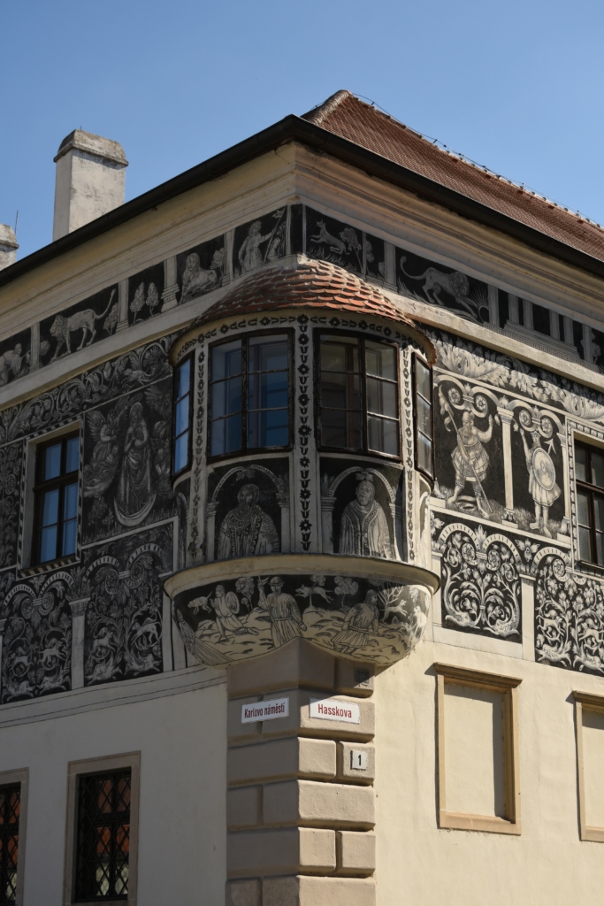 We followed the Jewish Heritage Trail through the historic quarter and visited the old Jewish cemetery, a peaceful place with a wonderful view over the town. Along the way, we passed several landmarks such as the round bastion Hrádek, Charles Square, and the striking Black House, its façade covered with fascinating historic graffiti. Each corner of the town seemed to tell its own story.